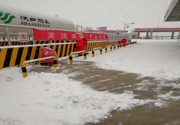 一是下發(fā)《冬季行車安全注意事項》,加強公司公務車輛管理,確保安全行駛。二是各場站全力配合所在服務區(qū)和公路管理單位拋撒融雪劑、防滑沙,及時除雪除冰,保障服務區(qū)正常通行。三是提前協(xié)調站區(qū)LNG采購計劃,保障資源連續(xù)穩(wěn)定供應。四是暢通信息報送,各場站及時上報站區(qū)人員、積雪清理及設備運行情況,并第一時間通過電話、短信、微信等多種方式將站區(qū)運營及高速公路通行情況告知客戶。五是加強站區(qū)設備、服務區(qū)鍋爐巡檢并做好記錄;為保障服務區(qū)鍋爐穩(wěn)定供應,及時開啟水浴式加熱器;嚴格應急值守,落實好應急搶險措施,及時處置險情災情,保障安全生產(chǎn)。