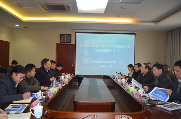 邢天虎總經(jīng)理和陳長春主任分別介紹了燃?xì)饧瘓F(tuán)和航天基地發(fā)展現(xiàn)狀及發(fā)展規(guī)劃,雙方一致表示由雙方共同合作在航天基地建設(shè)天然氣分布式能源項(xiàng)目,既符合互惠互利、合作共贏的理念,也為今后強(qiáng)強(qiáng)聯(lián)手、深度合作奠定了良好基礎(chǔ)。在聽取了項(xiàng)目實(shí)施單位西安新航燃?xì)饽茉从邢薰镜那闆r匯報(bào)后,雙方主要領(lǐng)導(dǎo)還就進(jìn)一步加快推動項(xiàng)目建設(shè)、積極落實(shí)國家天然氣發(fā)電上網(wǎng)電價(jià)政策、及時(shí)申報(bào)天然氣分布式能源示范項(xiàng)目、妥善解決能源站直供供氣、多方爭取優(yōu)惠氣價(jià)、確保2015年冬季供暖期實(shí)現(xiàn)對外供暖目標(biāo)等進(jìn)行了工作協(xié)商和安排。