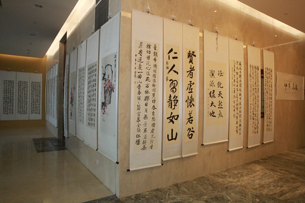 本屆書畫展共展出書法作品40件、畫作9件,邀請作品3件。參展作品形式多樣、風(fēng)格各異,無不傾注了員工們對生活、對工作的熱情和追求。嘉賓們認(rèn)真欣賞了展出作品,并給予了較高評價,參觀結(jié)束后進(jìn)行了筆會。
